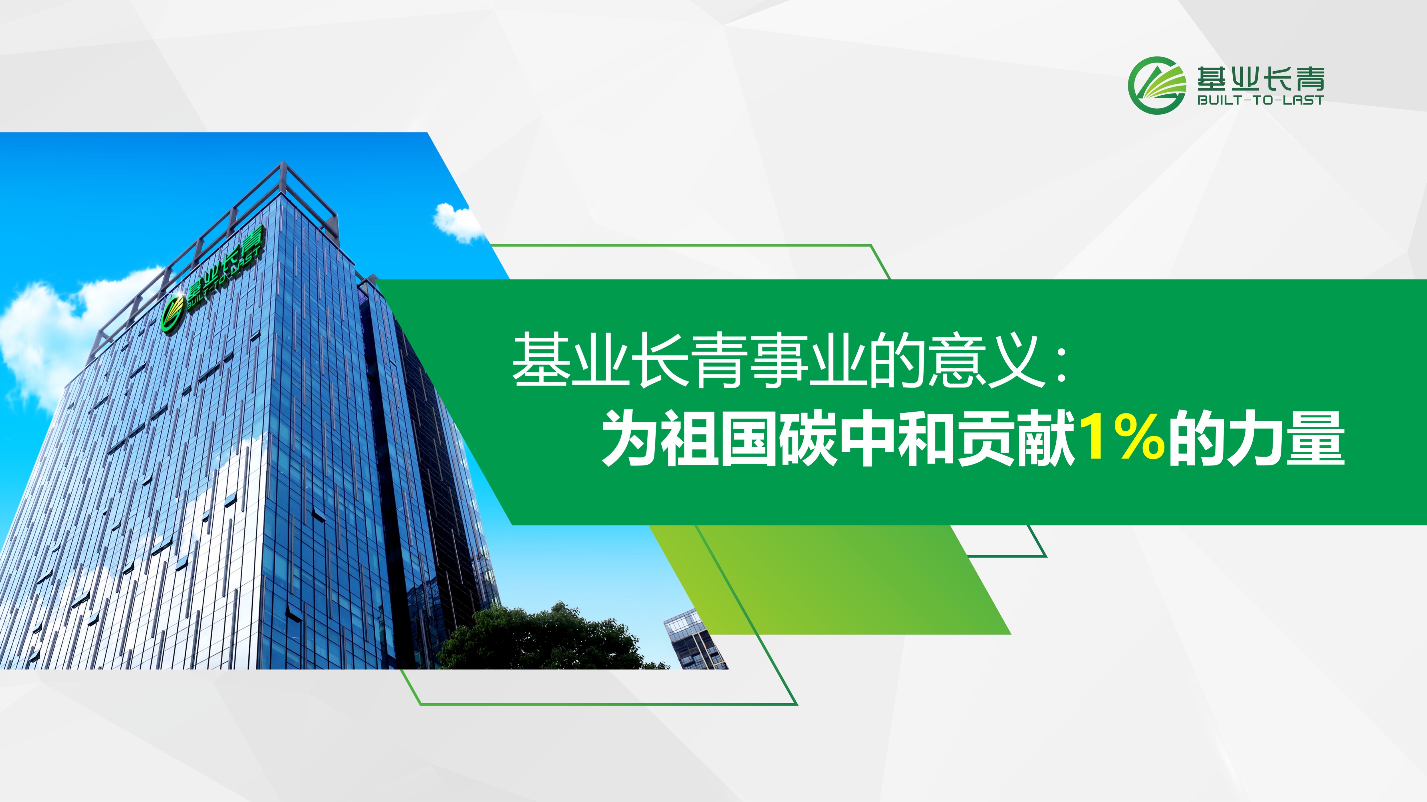 2021年12月7日,在董事會反復思考和研討下,“為中國碳中和貢獻1%的力量”正式成為基業長青的新使命,成為基業長青未來工作的新標準和新要求。