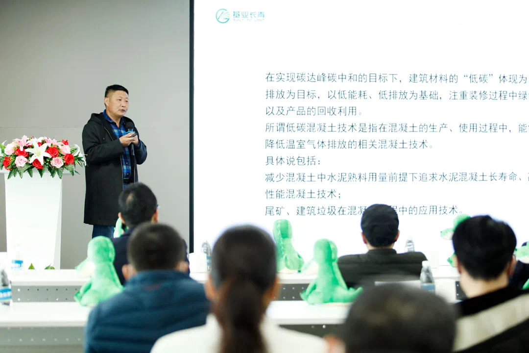 在接下來的會議中,以“大力推動低碳高性能混凝土發(fā)展”為主題,聞博士和基業(yè)長青董事長胡皓先生分別做了致辭。推動低碳高性能混凝土發(fā)展,以助力混凝土公司實現(xiàn)“降本、節(jié)能、增效”為目標(biāo),旨在保持混凝土施工性能良好和強(qiáng)度不變的情況下,減少水泥的用量,提升混凝土的耐久性,實現(xiàn)混凝土低碳高性能化,助力中國的雙碳事業(yè)。