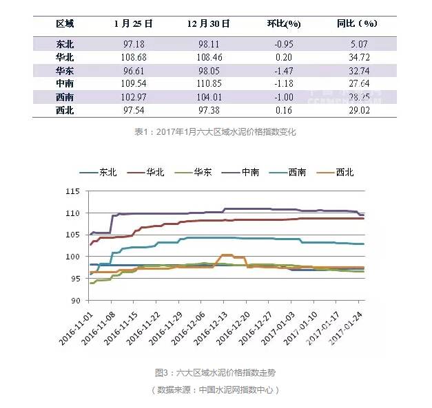 1月水泥市場:北方停滯,南方下滑