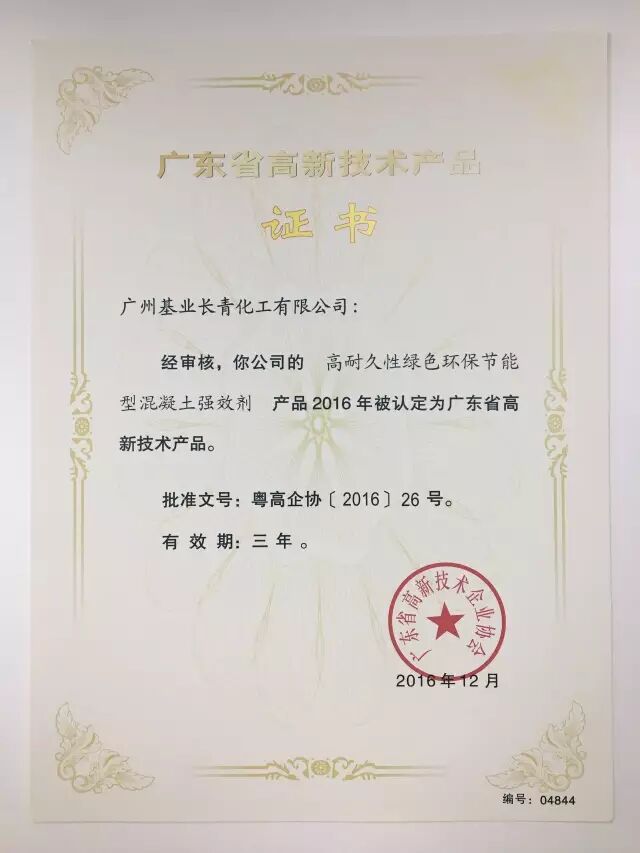三喜,今兒個(gè)基業(yè)長青牌混凝土強(qiáng)效劑又拿下了一個(gè)“廣東省高新技術(shù)產(chǎn)品”的榮譽(yù)稱號,向來堅(jiān)持有圖有真相作風(fēng)的長青君,必須放上證書給各位青友瞧瞧。