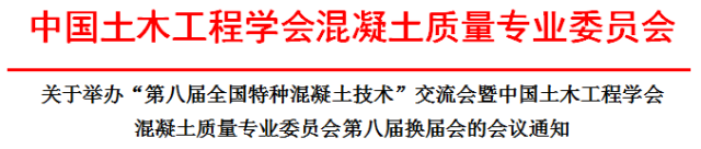 關于舉辦“第八屆全國特種混凝土技術”交流會暨中國土木工程學會混凝土質量專業委員會第八屆換屆會的會議通知