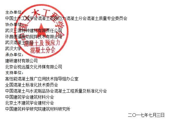 中國土木工程學會混凝土質量專業委員會擬定 2017年8月11日-13日于湖北省武漢市舉辦“第八屆全國特種混凝土技術”交流會,同期召開中國土木工程學會混凝土質量專業委員會第八屆換屆會。