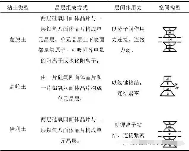 表1三種粘土的結(jié)構(gòu)類型與吸水性