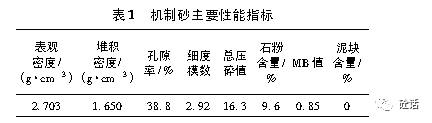 2)細(xì)集料:石粉含量為9.6%的花崗巖機(jī)制砂,其主要性能指標(biāo)見表1。