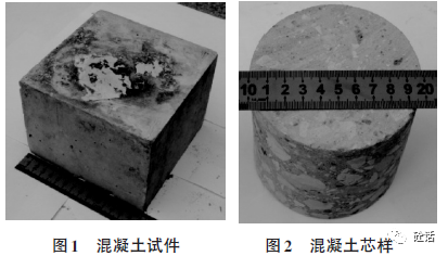 取芯:分別對標準養護90d的每組混凝土試塊進行取芯,芯樣直徑為100mm,然后去除兩端部分,切成高徑比1∶1的芯樣(如圖2所示)。