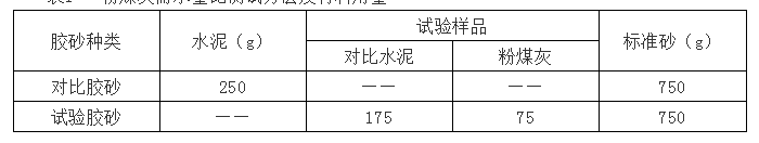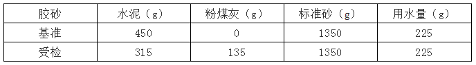 原材料:水泥,基準水泥;粉煤灰,樣品粉煤灰;砂子,ISO標準砂;水,純凈水。測定時各原材料配合比計量見表2。